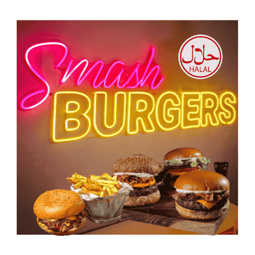 Double Patty (2x 80g), Smash-Soße,mayo double Cheese, Zwiebel, Sauergurken, Putenbacon und goldbraunes Brioche-Brötchen
